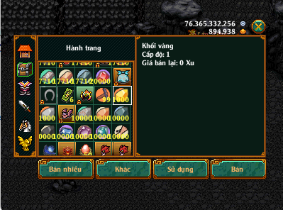 - Cần 500 thỏi (vàng, bạc, đồng, sắt, titan) để nâng cấp