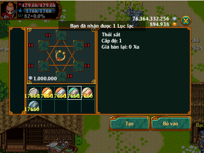 - Sau mỗi cấp cần thêm +10 nguyên liệu các loại